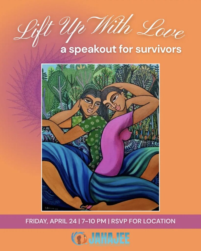 On Friday, April 24, join Jahajee’s annual sexual assault speakout for an evening of storytelling, poetry, and music where survivors are held in community and invited to share and reclaim our truths.