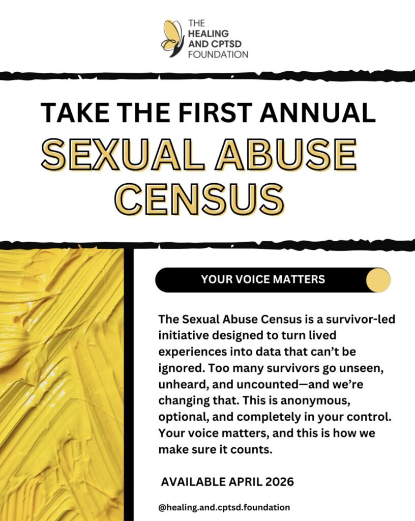 The Sexual Abuse Census is a trauma-informed, survivor-led global data project by The Healing and CPTSD Foundation. This census gathers anonymous data from survivors of all forms of sexual abuse, including child sexual abuse, incest, grooming, assault, coercion, exploitation, and institutional harm. For too long, these experiences have been minimized, hidden inside families, protected by systems, or reduced to statistics that don’t reflect the long-term reality. We are changing that. Whether you were believed or not. Whether it happened once or over years. Whether you have a diagnosis or are still making sense of your story — your voice belongs here.